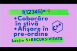 Recursivitate în C++: Coborârea în stivă și afișarea în pre-ordine, pas cu pas